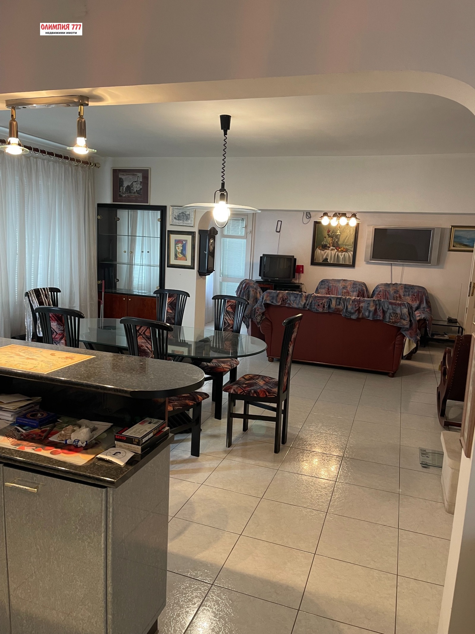 Многостаен апартамент в кооперация на 20 год, състоящ се от четири спални с излаз на тераси, просторна дневна с трапезария с камина и бокс-70 кв. две бани с две тоалетни, шест тераси, кабинет-свързан с таванска гарсониера състояща се от кухненски бокс и трапезария, баня и тоалетна и спалня. Възможност за закупуване на двоен гараж 33кв. м. на отделна цена-40 000е. Имота се продава с цялото обзавеждане/италианско-холна гарнитура от естествена кожа/ както е на снимките. Отоплението е на климатици, има газ в кооперацията, за повече информация и огледи на посочения телефон. При интерес е възможен разумен коментар на цената.