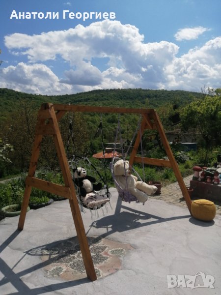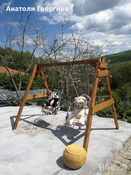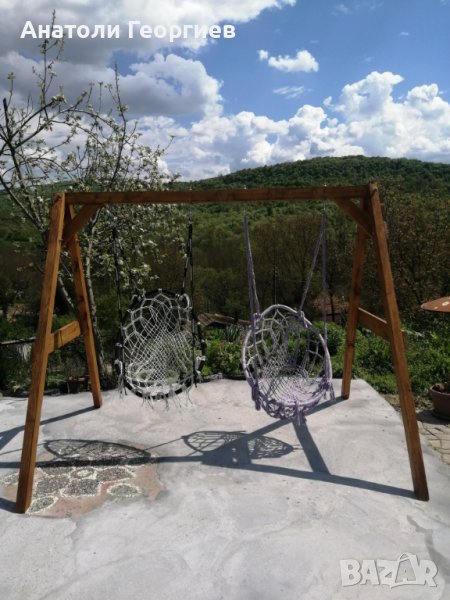 Стойка за люлки, ръчна изработка от чамов материал. височина 180 см. дълбочина 175 см. ширина 220 см.