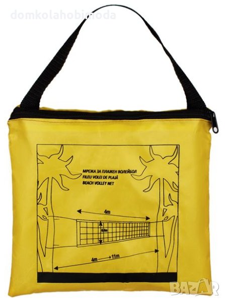 Мрежа за плажен волейбол (4х0,4м) в жълта практичен чантас цип и дръжка.