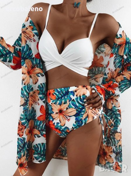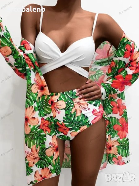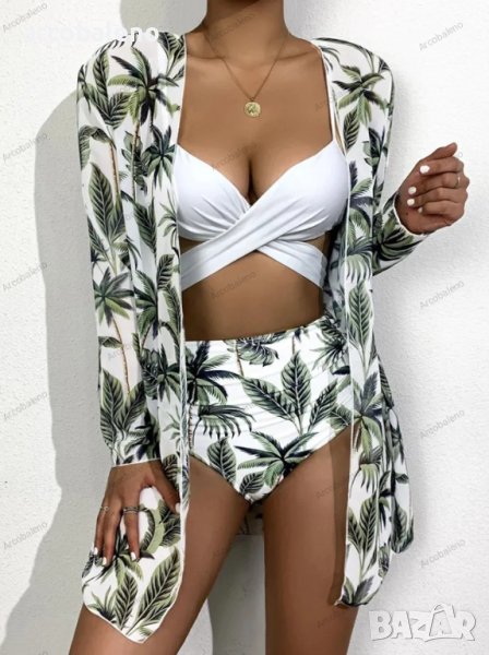 Дамски секси слинг бански от три части с мрежест принт и с висока талия, 11цвята