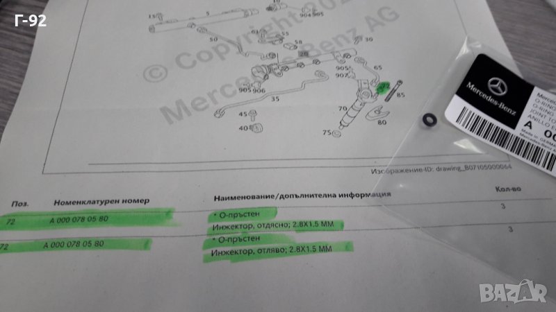 A0000780580**NEU**Mercedes Benz**УПЛАТНЕНИЕ ЗА ДЮЗИ (ИЗЛИШНОТО ГОРИВО)**
