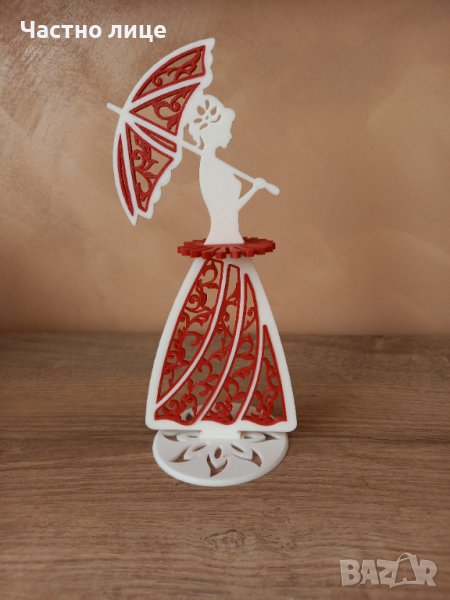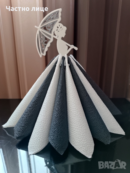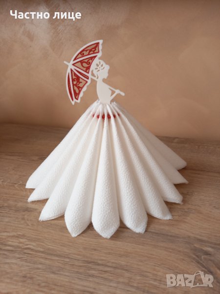 Салфетките се закачат на кръста на фигурата и образуват красива пола. При нужда се издърпват.