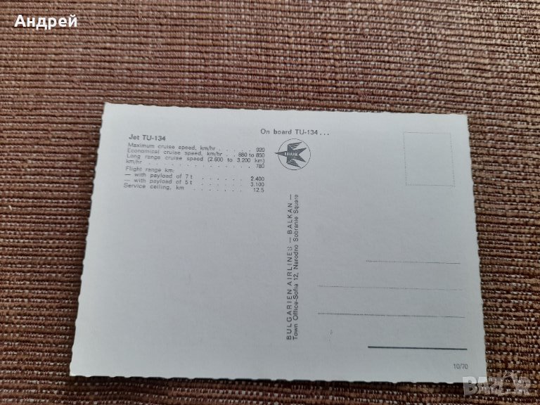 Картичка БГА Балкан,Balkan ТУ 134, снимка 1 - Колекции - 40549303 Картичка БГА Балкан,Balkan ТУ 134, снимка 2 - Колекции - 40549303 1/2