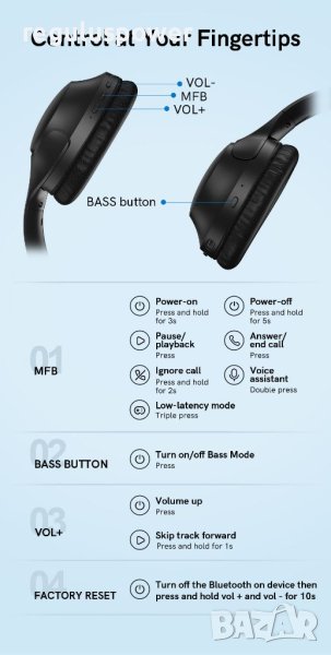 Безжични слушалки QCY H2 с Bluetooth 5.3, до 60 ч. време на възпроизвеждане в безжичен режим и функция за подсилване на басите с бутон от слушалките и от приложението QCY APP , където ще откриете и вградени различни еквалайзери за всяка музика.
