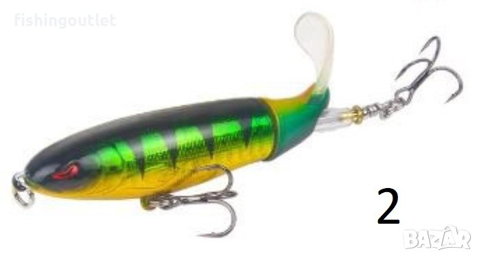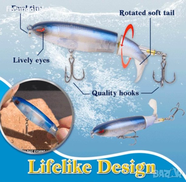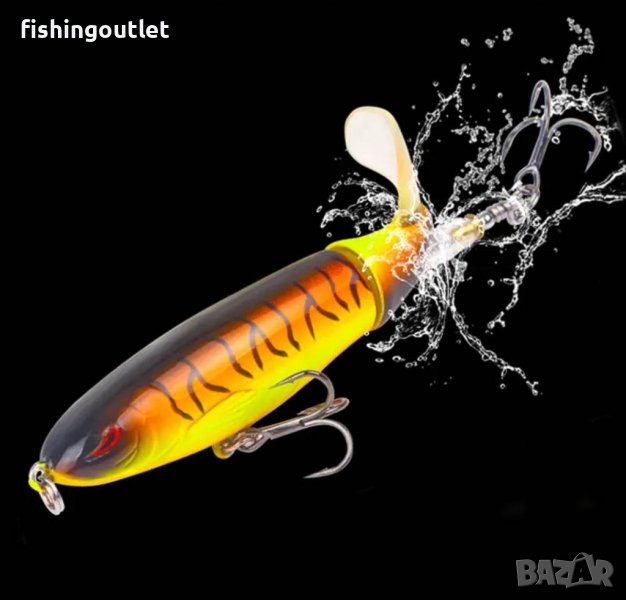 Тази специална, плуваща близо до повърхността примамка е най-новия хит при спининг риболова. Воблерът е с две витла, които създават шумове, вибрации, мехурчета и пръски във водата, привличащи по този начин всички хищници.