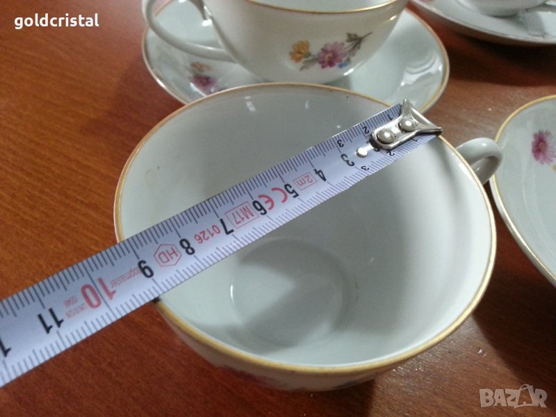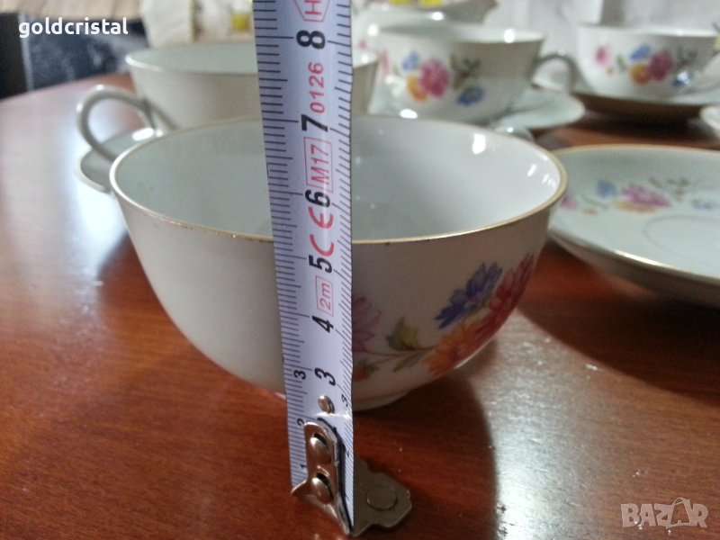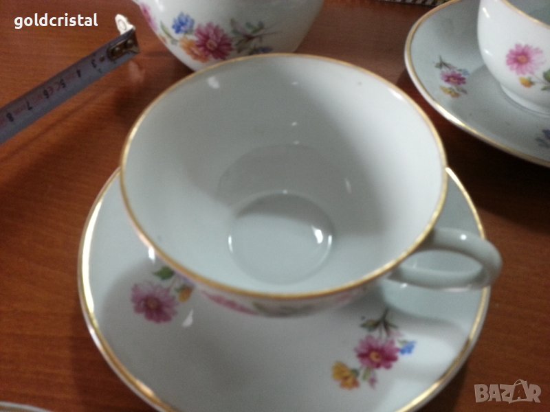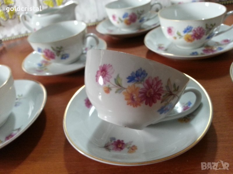 Стар немскиф порцелан без маркировка големи чаши за чай 6бр чаши и 6бр чинии захарница латиера без забележки фин порцелан сервиз комплект сет лот ретро арт декор винтидж колекция стари антикварни предмети обзавеждане за дома и семейството подходящи за подарък за ценители и колекционери