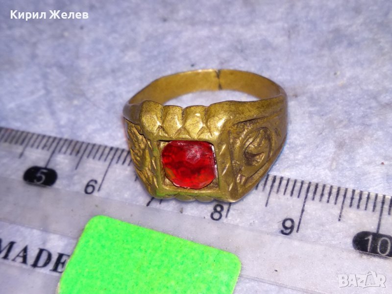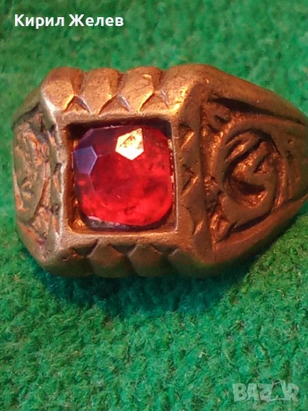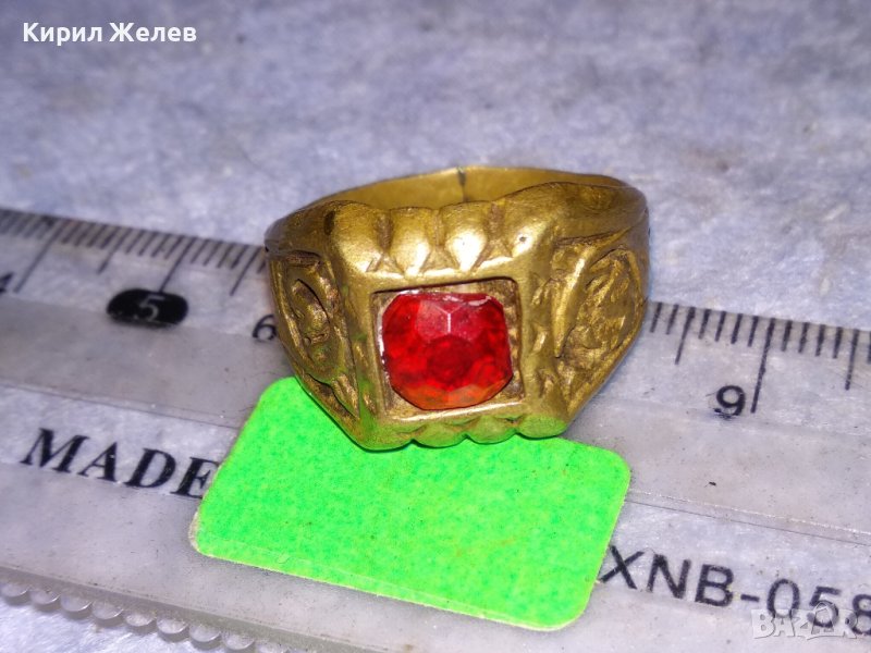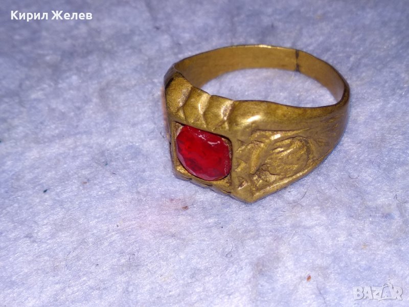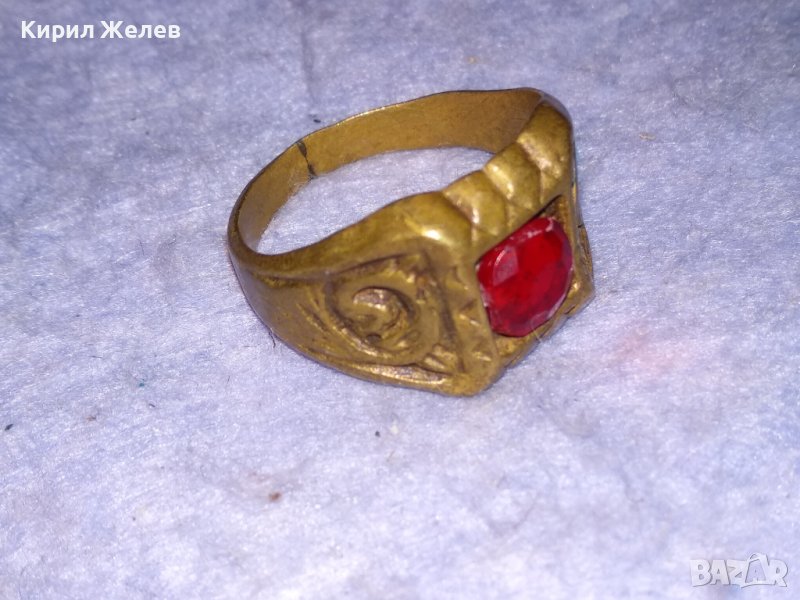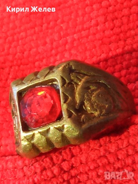 СТАРИНЕН ОРНАМЕНТИРАН БРОНЗИРАН КЛАСИЧЕСКИ РЕТРО ПРЪСТЕН с ФАСЕТИРАН КРИСТАЛ РЪЧНА ИЗРАБОКА 29670
