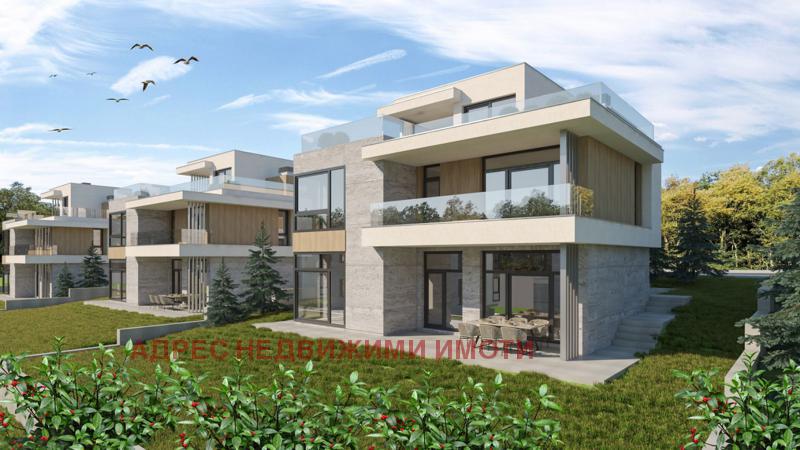 АДРЕС недвижими имоти продава новостроящи се къщи в с.Старозагорски бани. Площта на парцела е от 480 кв.м, РЗП на къщата 309 кв.м. Къщите са разположени в затворен комплекс с лице на две улици. Парцелът е с прекрасна панорама и изглед към езерото. Главният вход на къщата е на кота +0,00.На същата кота са разположени антре ,мокро ,гараж ,склад ,винарна ,малка спа зона сауна и баня. На следващото ниво се намира дневния тракт с покритата веранда, спалня с южно изложение и баня.На ниво кота +6,12 има две спални с обща тераса и бани . На терасата е предвидено и джакузи, изложението е южно Първите три къщи ще бъдат завършени до края на 2023 г.Обявената цена е без ДДС