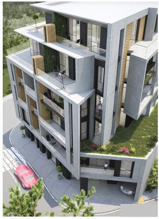 СГРАДА: ЖИЛИЩНА сграда с отлична архитектура. Фасадата и вътрешните части са решени в естествени материали дърво и камък травертин. Сградата ще се издава със степен на завършеност БДС, с най-висок клас дограма и асансьор.