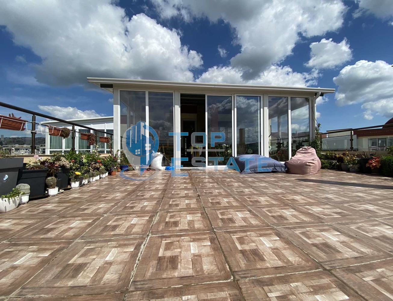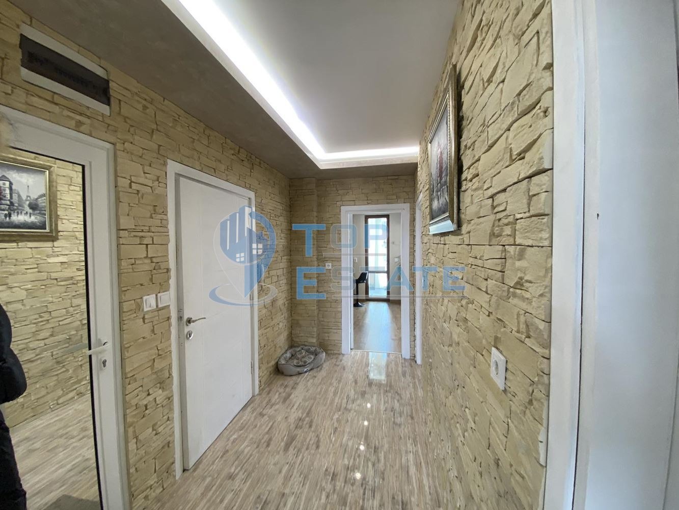 Топ Естейт Недвижими имоти Ви предлага тристаен апартамент ново строителство в близост до парк Дружба, град Велико Търново. Районът около жилището е спокоен, добре уреден, като в близост са разположени детски учебни заведения, парк Дружба, заведения за хранене, детски площадки, спирки на градския транспорт, множество търговски обекти и други. Предлаганият имот е позициониран в газифицирана сграда ново строителство на последен етаж с работещ асансьор, изложение север, юг, изток. Жилищната площ на имота е 165.30 кв.м, разпределени между просторна и луксозно обзаведена всекидневна с кухня в един обем, две стилни спални, баня и тоалетна, килер и две големи панорамни тераси. Едната тераса е изцяло остъклена, като в нея са обособени кухненска част и трапезария, както и кът за отдих. От нея се разкрива чудесна панорамна гледка към града. В другата част на жилището е позиционирана втора тераса, като част от нея е остъклена и превърната в прекрасна зимна градина. От нея има директен излаз на открита тераса, предлагаща чудесна панорамна гледка. Предлаганият имот е модерно обзаведен и оборудван с висок клас електроуреди. Отоплението и охлаждането през летните месеци е решено чрез високоефективни климатици. Предлаганият имот се продава заедно с прилежащо избено помещение. Отделно към имота може да бъдат закупени и две паркоместа. Имотът е подходящ, както за инвестиция, така и за вашето ново жилище. Номер на оферта: 1337. We speak English and German.