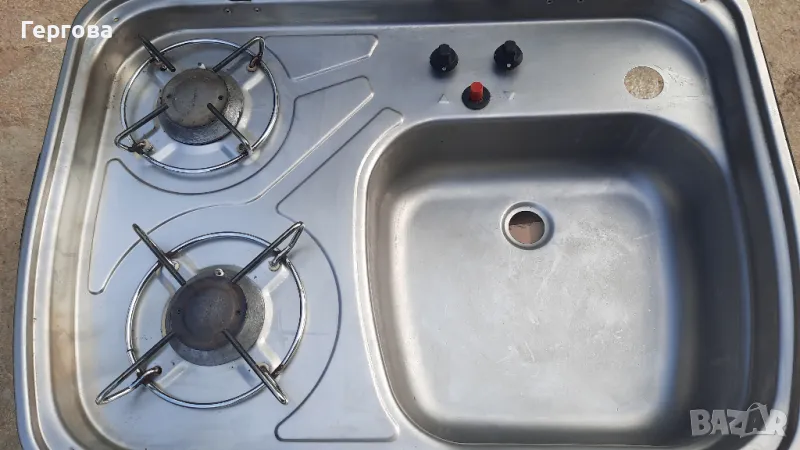 8. Употребявана мивка и котлони за вграждане в каравана /кемпер / лодка, SMEV / Dometic и двете със стъклентермоустойчив капак. Размери на мивката: 420 × 430 × 140-150 mm