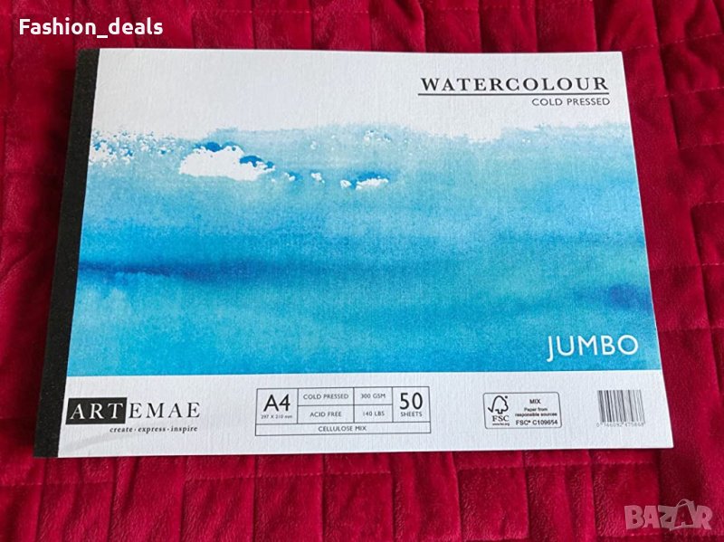 Акварелен тампон Jumbo с тегло 300 г/кв.м, подходящ за акварелна практика или за готови картини.