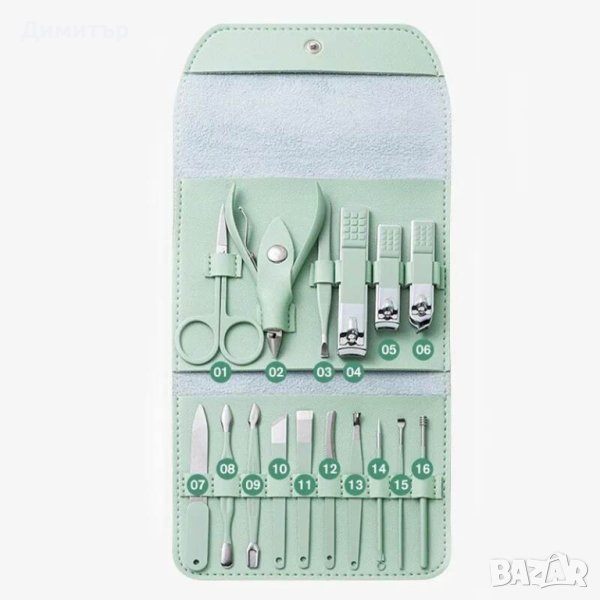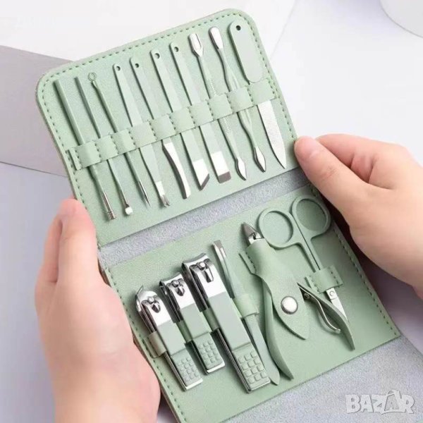 Страхотен комплект за маникюр от 16 части с калъфче в зелен цвят