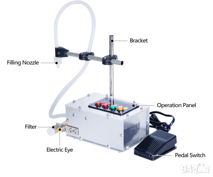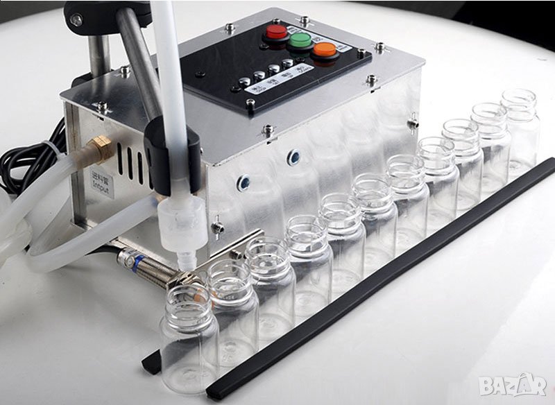 Има сензор за бутилки! Може с определена автоматика да се ползва към автоматична транспортна лента за пълнене.