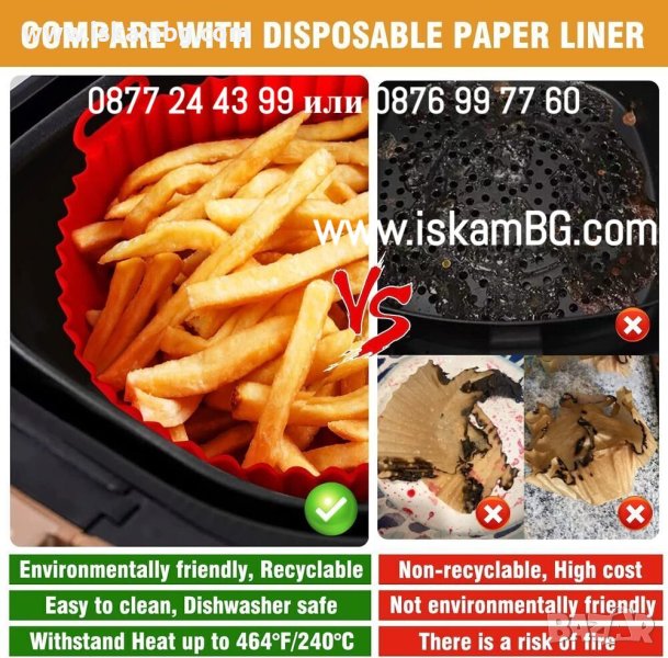 Опазване на околната среда. Силиконов тиган за многократна употреба, за да замени други вътрешни съдове на фритюрник.
