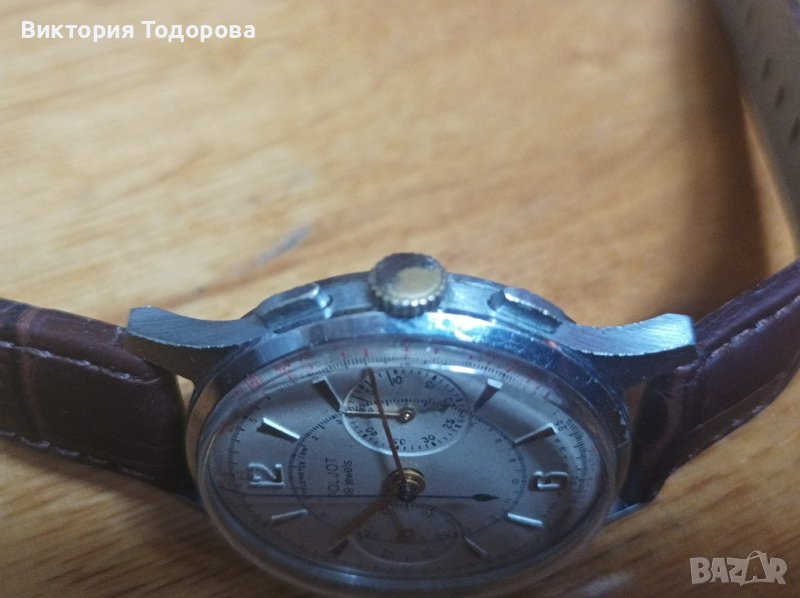 Здравейте! Предлагам автентичен и рядък мъжки часовник Полет хронограф 3017. Всичко по часовникът работи. Профилактиран при часовникар в София декември 2022 г. Всичко по часовника е добре запазено. Циферблатът е оригинален. Предлага се с красива кожена каишка. Часовникът е с колекционерска стойност. Предпочитам лично предаване. При изпращане допълнителни условия.