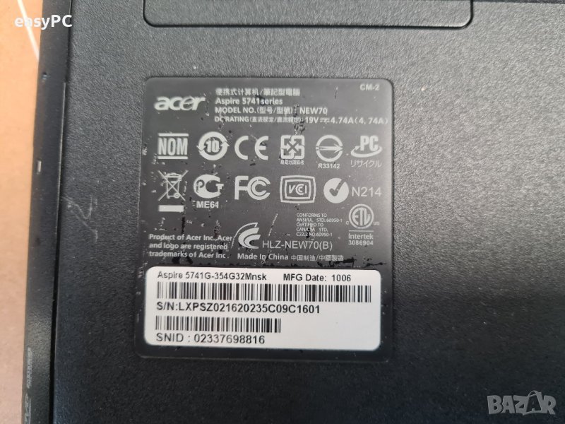 Продавам лаптоп ACER Aspire 5741G за части. Цената е за целия. За отделни компонети пишете на лични. Матрицата работи, дъното не работи, Батерията държи малко.
