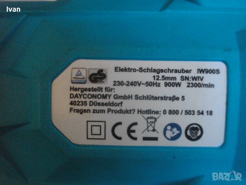 Цена на комплекта ел.гайковерт IW 900 S от обявата - 249 лв.