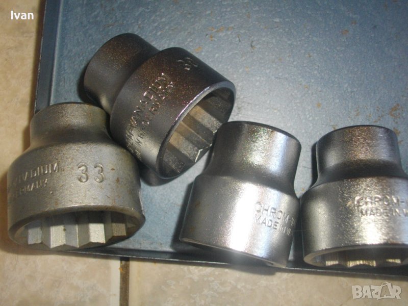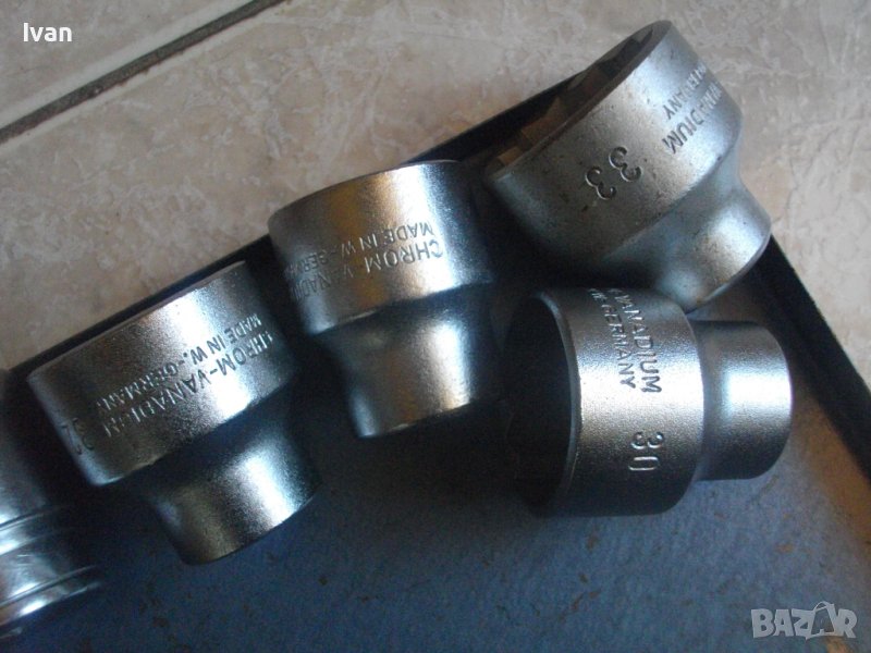 От тях съвсем нови и неупотрубявани са общо 8 бр. Размери : 33 мм, 32 мм, 30 мм, 28 мм, 27 мм, 24 мм, 16 мм, 14 мм. Торсовеве са немски висок клас W.Germany - Chrom-Vanadium