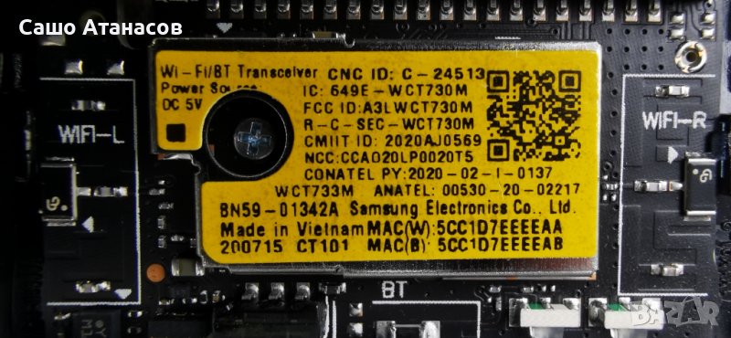 Wi-Fi/BT Transceiver/IR/POWER Button Board : BN59-01342A / WCT730M - 40лв.