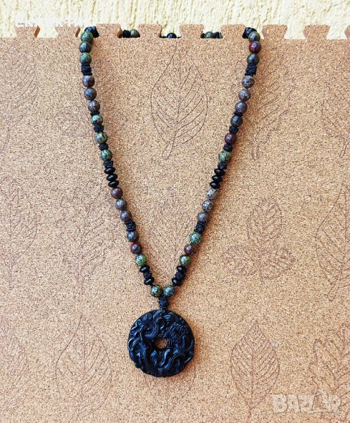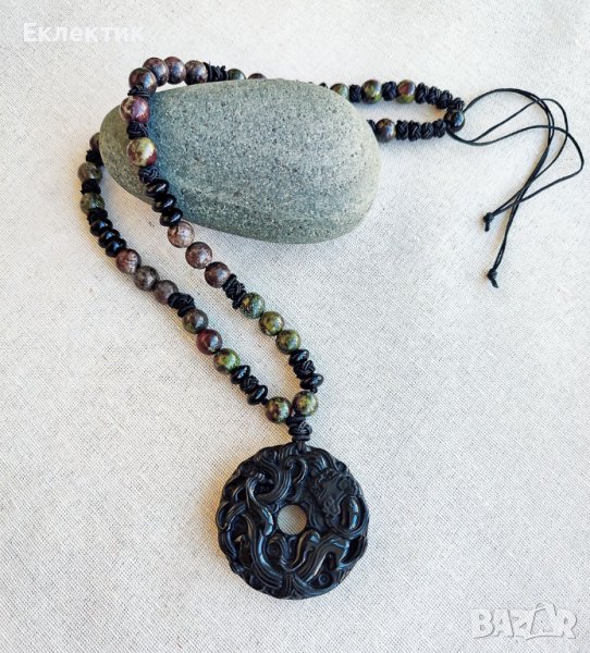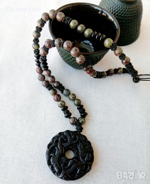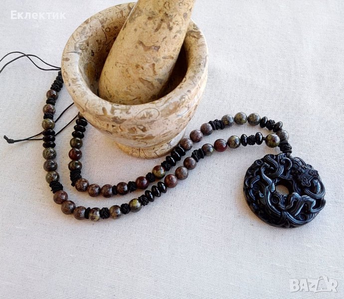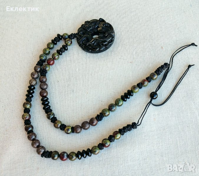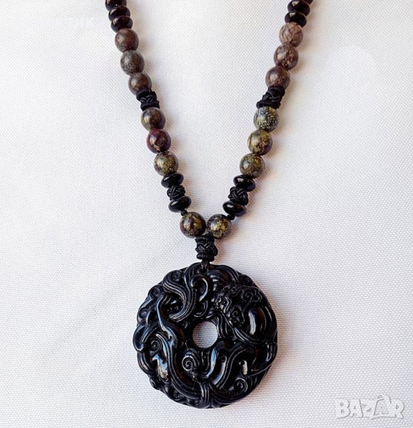 Амулет от обсидиан с наниз от полускъпоценни камъни