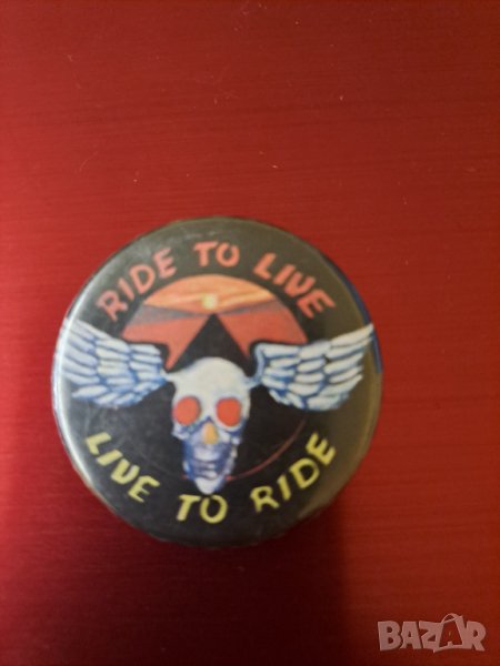 Тематична брошка Ride to live Live to ride. Отговарям на съобщения тук, изпращам с куриер с отстъпка, преглед или лично предаване в София.
