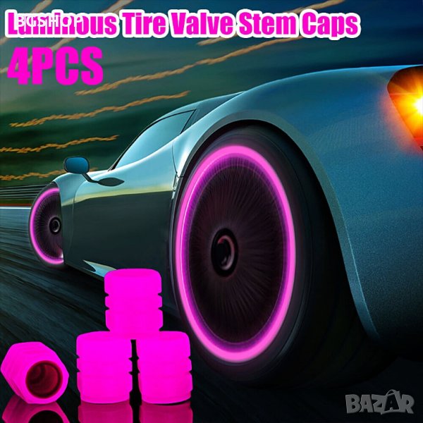 Светещи капачки за вентили на гумите - Изработени от искрящ материал с кристали и луминисцент. Ще придадете на колата си уникален луксозен вид с красиви ослепителни блясъци.