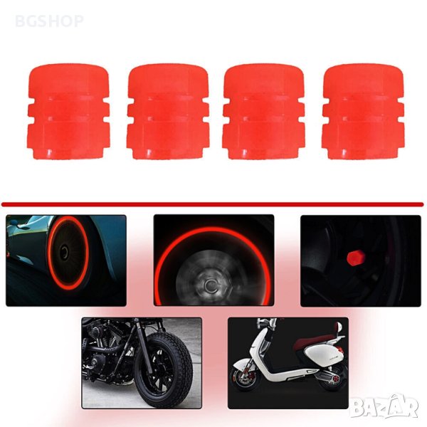 Светещи капачки за вентили на коли, мотори и колела - Red