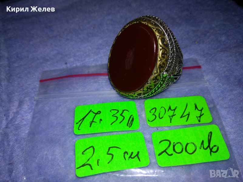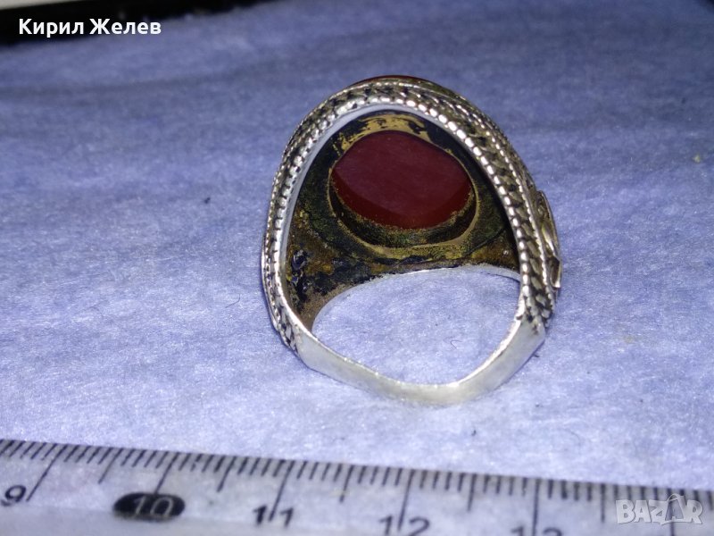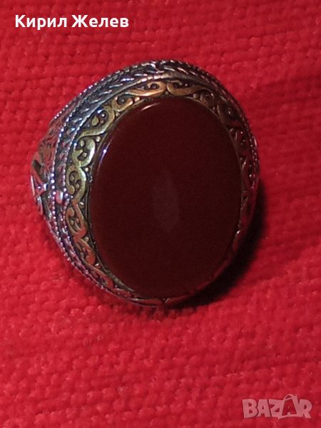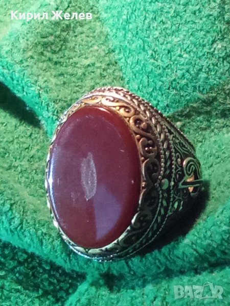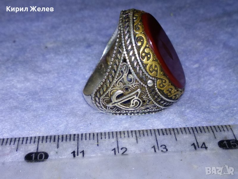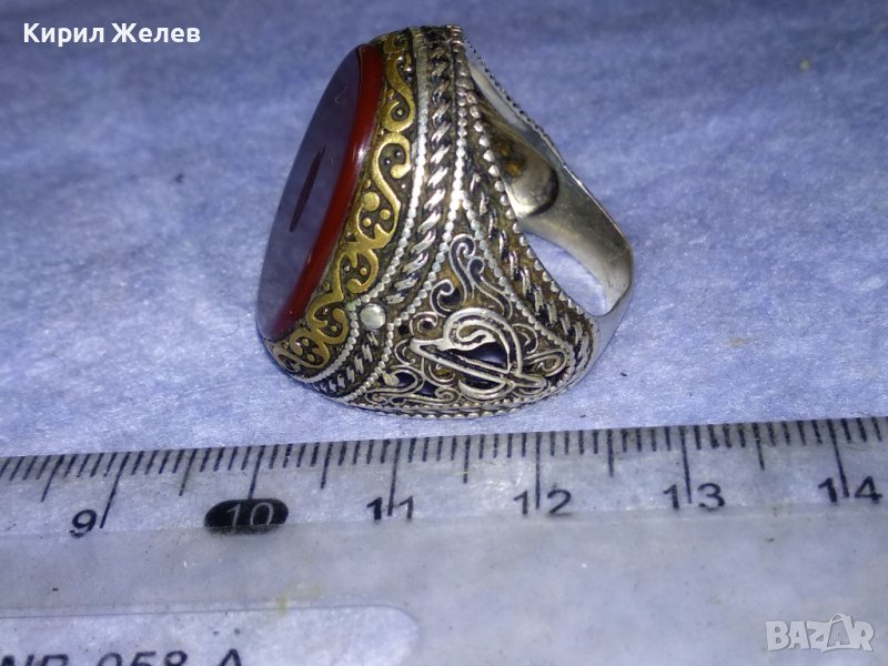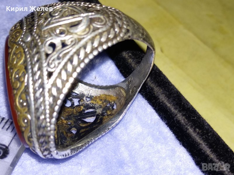 ОГРОМЕН СТАР ТУРСКИ СРЕБЪРЕН СКЪПОЦЕНЕН РЕТРО ПРЪСТЕН СРЕБРО 925 с ПОЛИРАН КАРНЕОЛ в ПОЗЛАТА 30747