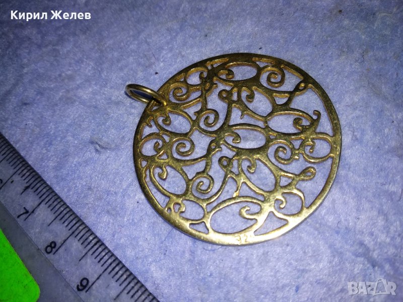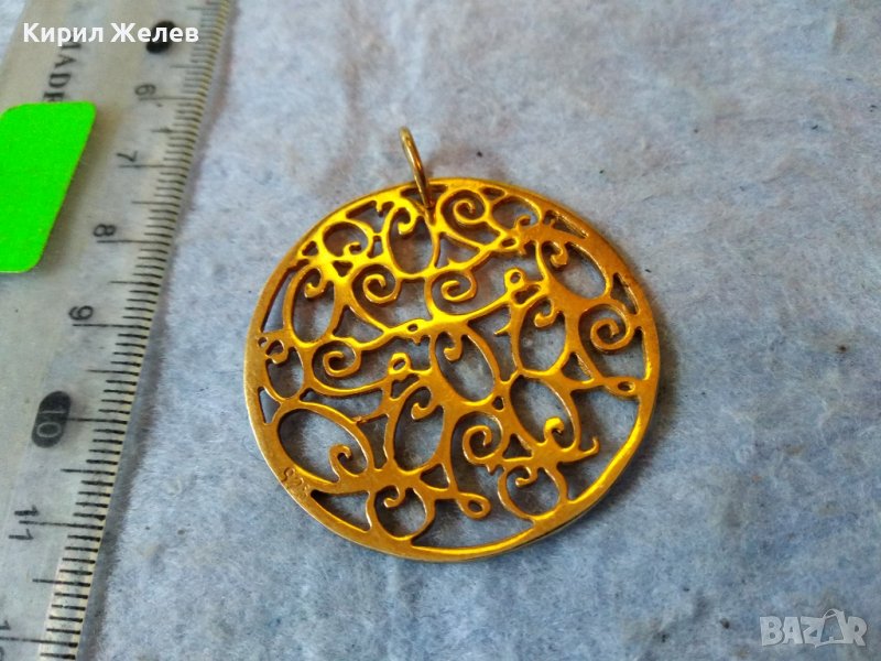 ВЕЛИКОЛЕПЕН СРЕБЪРЕН с ДЕБЕЛА РЕАЛНА ПОЗЛАТА ФЛОРАЛЕН АРТ МЕДАЛЬОН СРЕБРО 925 АЖУРНА ИЗРАБОТКА 27628