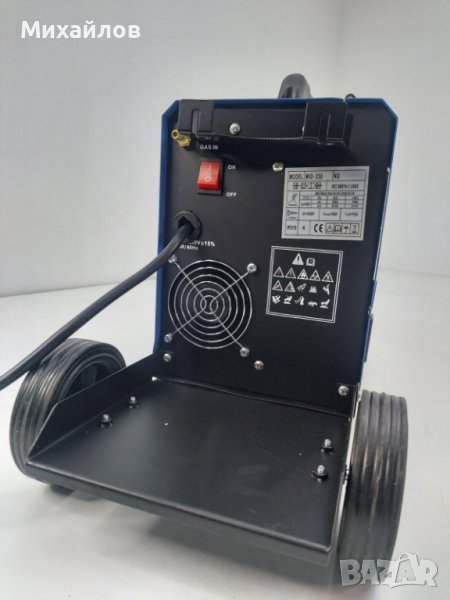 Предлагаме, супер професионално инверторно телоподаващо устройство MIG 230А VOLT electric Profesional , за монофазен ток. Висок клас технология. Регулиране на заваръчния ток/плавно/ 20-230A ампера, монофазен /230V/. Степен на защита – IP 21S. Работи с ролки от 1 и 5 кг. Окомплектовани са с еврошланг за МИГ/МАГ заваряване, щипка маса, маска, чукче с четка, оригинални ръкавици за заваряване от телешка кожа, ролка. Предназначен е за ремонтни и сервизни дейности. Поради широкия спектър на заваряване с HITECH ТЕХНОЛОГИЯ, заварява почти всички видове метал и е удобен за монтажни заварки от професионалисти и начинаещи заварчици. По желание на клиента, телоподаващо MIG 230 А VOLT electric , може да се окомплектова с манометър и малка бутилка СО2 6,7 литра.