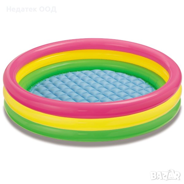 Детски басейн с надуваеми странични стени и надуваемо дъно. Особено издръжлив.