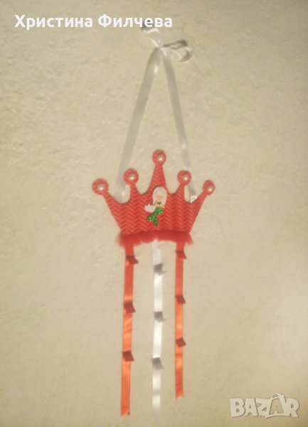 Органайзер Корона за детски аксесоари, изработен от фоам, перли и сатенени ленти.