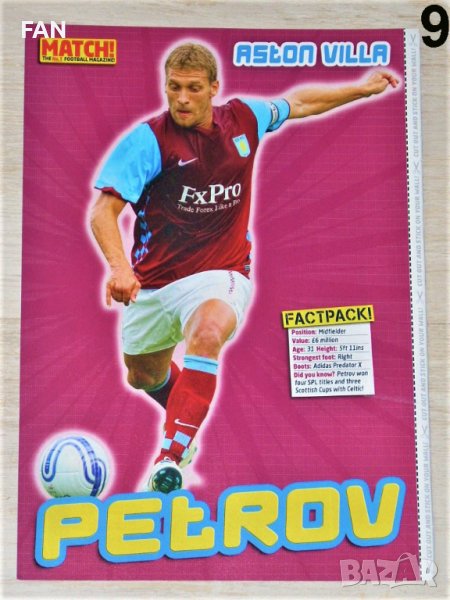 Предлагам цветни плакати на Димитър Бербатов с екипите на Манчестър Юнайтед, Тотнъм Хотспър и Фулъм; Стилиян Петров (Астън Вила), Бончо Генчев (Ипсуич Таун) и Светослав Тодоров (Портсмут).