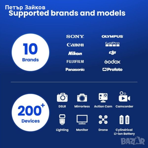 Съвместимост с 10 марки: Зарядното устройство за камера с различни марки е съвместимо с 10 марки с над 200 модела