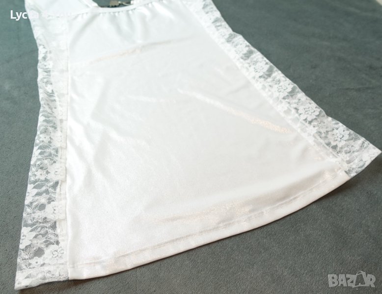 M/L размер (85C) луксозна ефирна бяла нощничка с брокатен блясък
