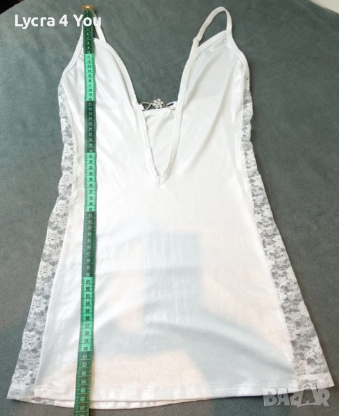 Облечена стои като много къса рокличка с талия 33см. и ханш 41см. Дължина 66см. с презрамки с регулация тип сутиенени.