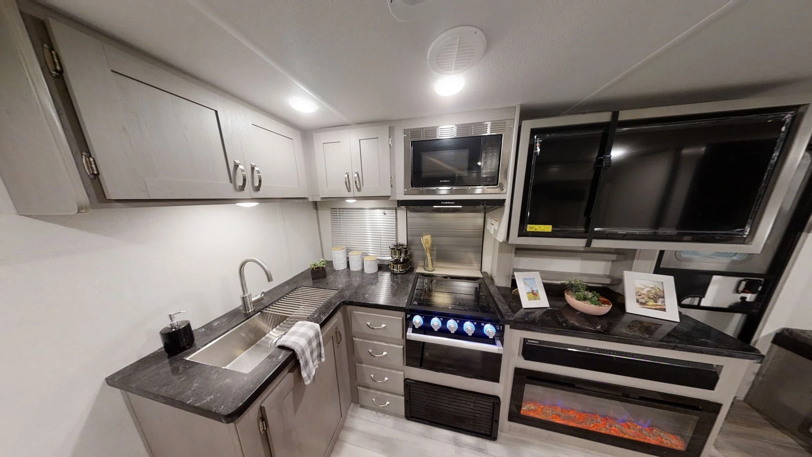 крик за теглича; ОБОРУДВАНЕ: - хладилник 300л, 12V; - канален климатик 14500 BTU; - газов/ел. бойлер 24л; - отопление 30000 BTU, газ; - газова фурна с три котлона; - абсорбатор; - микровълнова фурна; - телевизор 40 инча; - ел. крикове за стабилизация; - WIFI антена за телевизия и интернет 4G; - саунтбар с висока разделителна способност; - ел. тента 5. 7м - съд за чиста вода 170л; - съд за отпадна вода 250л; - съд за тоалетната120л;