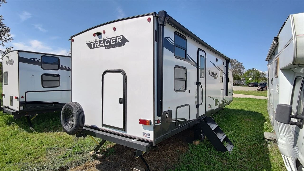 НОВА КАРАВАНА PRIME TIME, МОДЕЛ TRACER25BHS - 60000EUR без ДДС - дължина 9м; - 6 места за спане; - стени и таван - изцяло алуминиева, двойно заварена конструкция с изолация от полистирен. Външно и вътрешно покритие от фибростъкло; - слайд за дневна; - ел.