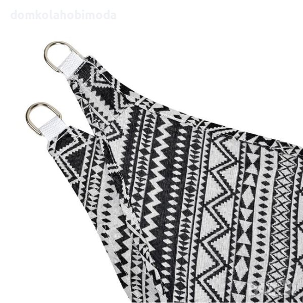 Сенник с триъгълна форма и цвят черно сив с ацтекски дизайни. Лесно се поставя в градината, терасата или балкона и може да се използва и в басейни, детски площадки и др.