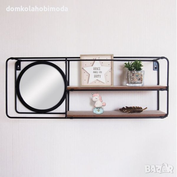 Декоративен рафт 2 нива дървен метал с огледало 50x10x19 см Описание - Характеристики Декоративна композиция с 2 дървени рафта,