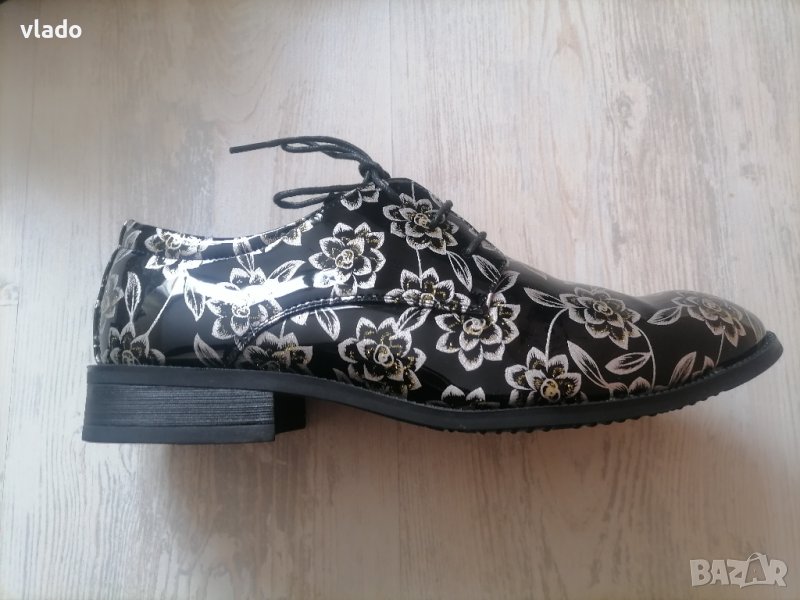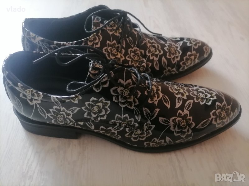 Продавам чифт нови официални мъжки лачени обувки с уникално търсен принт, само номер 44 единствен чифт!!!