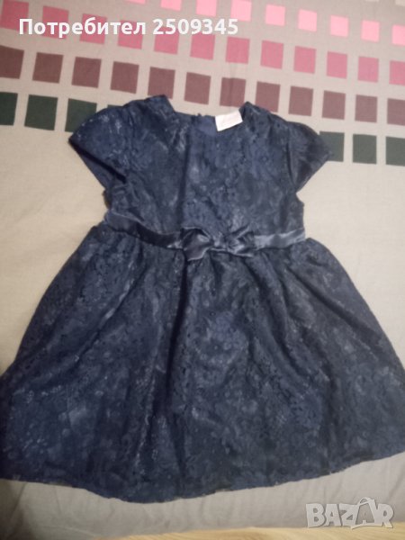 Дантелена рокличка 98см,24/36мес,дантелена официална,с къс ръкав,с подплата ,тъмно синя ,с цип на гърба,НОВО!!!