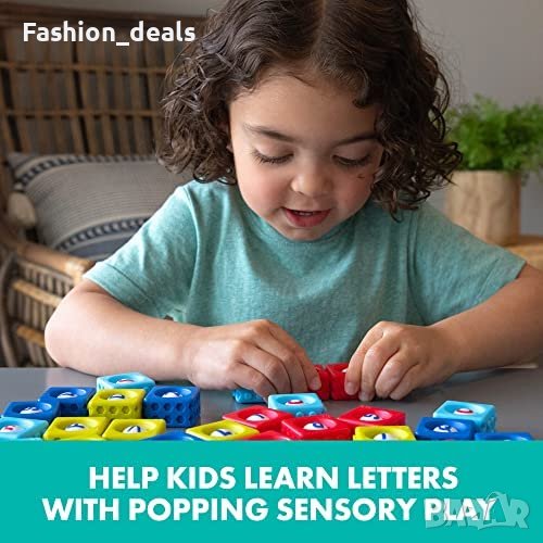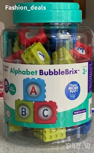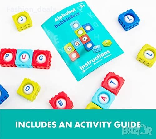 Learning Resources Alphabet BubbleBrix е играчка за учене, предназначена за деца на възраст от 3 години. Децата могат да натискат буквичка, да я усещат как се появява и да казват името ѝ, за да научат азбуката. Могат също така да свързват тухличките, за да съставят прости думи. Alphabet BubbleBrix е чудесна играчка за неспокойни пръсти и помага за изграждането на фини двигателни умения чрез тактилна игра. Комплектът включва 42 Alphabet BubbleBrix в кофичка за съхранение с удобна дръжка за пренасяне.