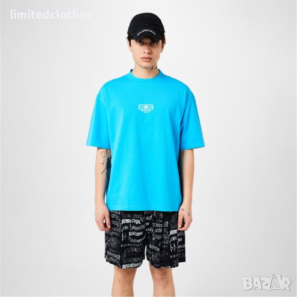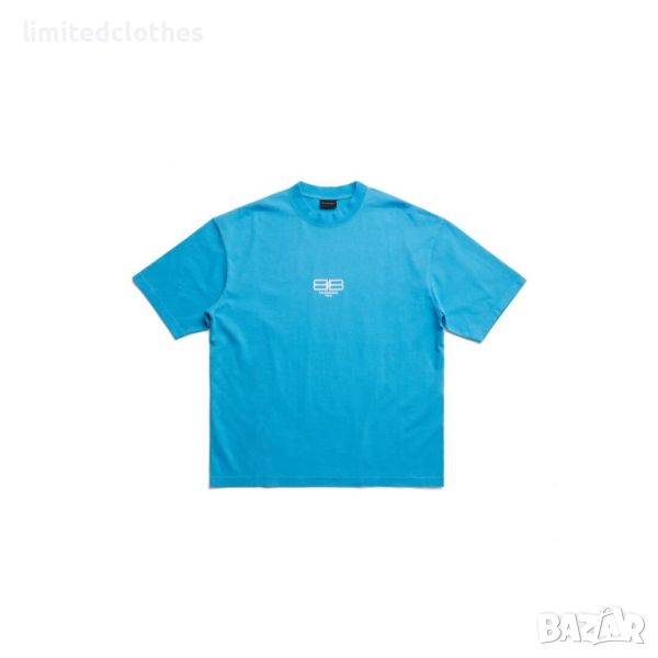 BALENCIAGA BB SKY BLUE ICON EMBROIDERED LOGO OVERSIZED Тениска