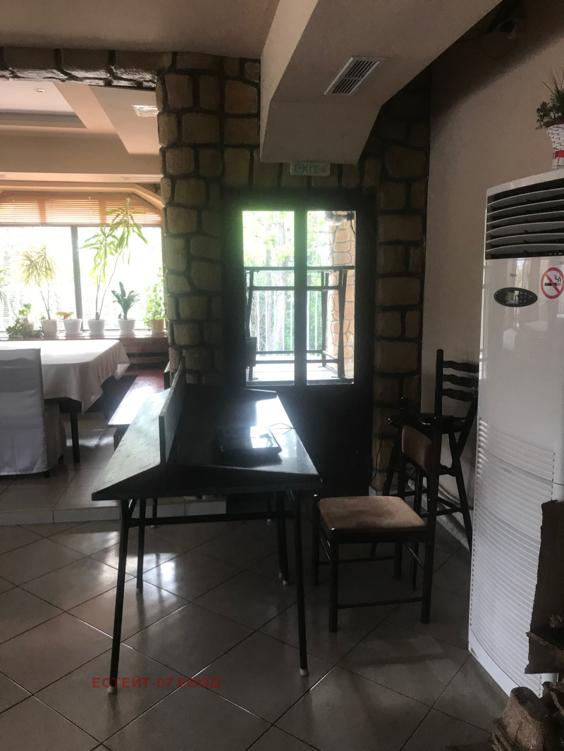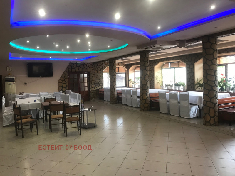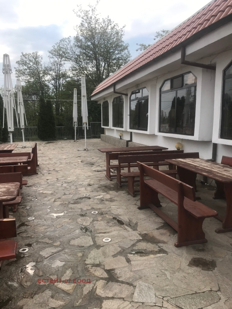 Оферта 214.Предлагаме Ви търговски обект-голям ресторант със закрита търговска площ и открта градина-напълно оборудвано и работещо и жилищен етаж над него.Парцела върху който е разположен ресторанта е 875 кв.м.Представлява предверие мъжка и женска тоалетна,основна зала с размери 180кв.м.160места на открито и 160 места на закрито,барплот,място за DJ,отопление и охлаждане с климатици,охлаждане с кладенец,отопление с камина с водна риза.Има миално отделение,напълно оборудвана кухня,тоалетна,баня и съблекалня за персонала,складови и помощни помещения,котелно.В двора има паркоместа.За жилищната част има два входа-от ресторанта и от двора.Жилището представлява коридор ,хол с трапезария и кухня,огромна тераса,две спални,баня с тоалетна ,тоалетна.Под и обзавеждане -изцяло естествени материали,алуминиева дограма,три климатика.Иамира се на много хубаво място до рекичка,с лице на две улици.За повече информация и огледи 0897913101