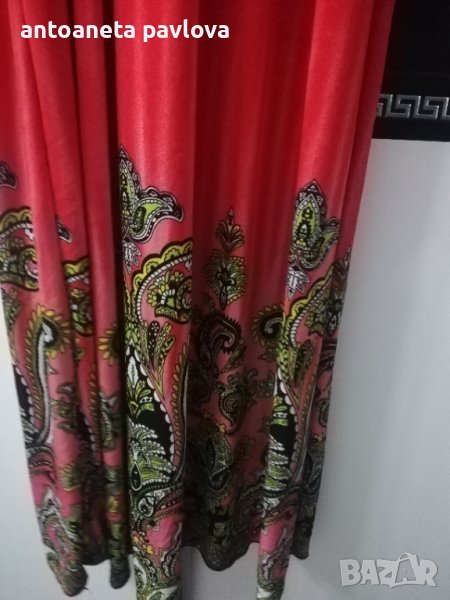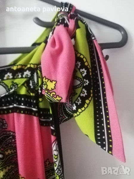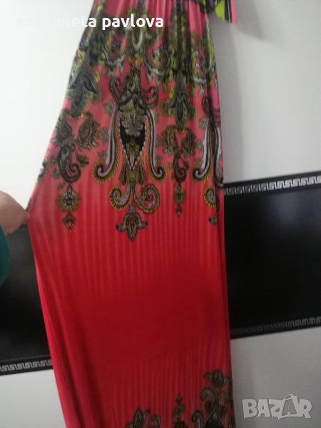 Много красива лятна рокля . Връзва се в горната част на рамото .Слагана е един път .Материята е трико жарсе ,която пада тежко .