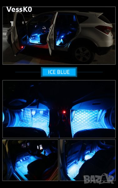 Комплект за безжично управление на музиката със 7 цветни RGB интериорни светлини на автомобила.