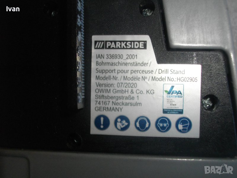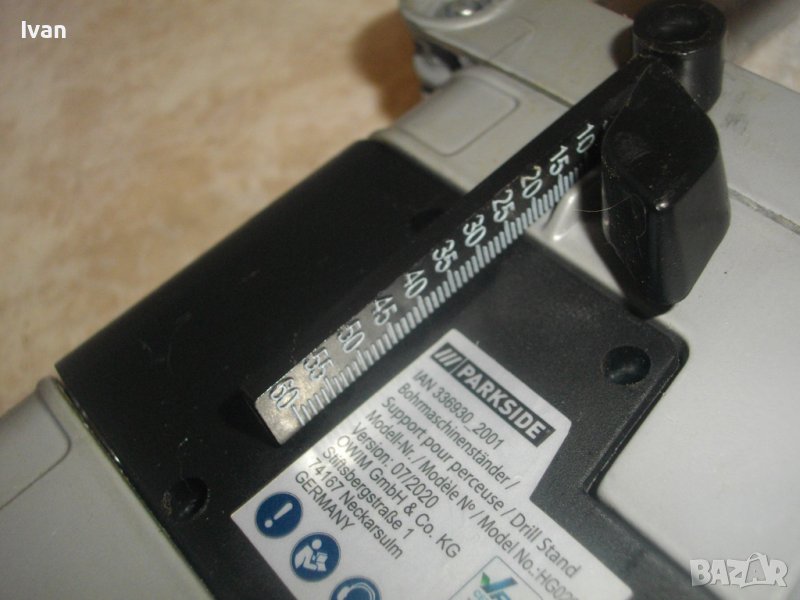 ОПИСАНИЕ на нова немска стойка ПАРКСАЙТ - 129 лв. ОПИСАНИЕ на стойка за бормашина - 129 лв.. Съвсем нова ,неизползвана и неупотребявана. Без включено менгеме. Марка и модел - Parkside 364704. Немско оригинално производство - GERMANY - 2001 г. Универсален захват - кръг диаметър 43 мм. ОТЛИЧНО техническо8работно състояни ена стойката. Работен ход 60 мм. Височина 50,5 см. Ширина с дръжката - 36 см. Долната основа е чугунена с размери 160 х 190 мм. Тегло на стойката - 3,0 кг. Описание на стойкато от линкове:
