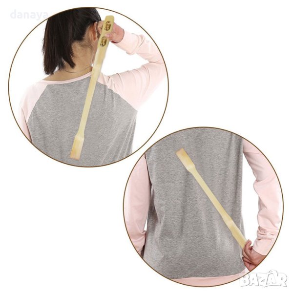 Чесалка с масажор. 2 в 1 дълга дървена ръчичка за чесане с масажор, който се състои от 2 ролкови топчета. Ръчичката е изработена, специално за труднодостижимите части на тялото, а именно гърба. С този дървен масажор ще масажирате гърба без много усилия, а чесалката ще облекчи мигновено труднодостъпното място.